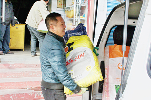 2月13日,原平市宇峰種業(yè)工作人員正在為種子銷售點運送各種優(yōu)良種子。目前該市農資部門已經為農民們準備好了各種化肥、種子、農機具等,為今年春耕備耕做好了準備。(趙春曉 攝)