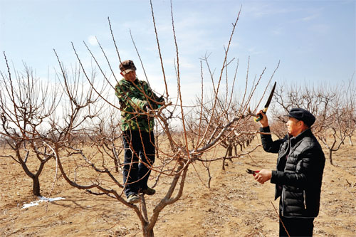 代縣胡峪鄉(xiāng)望臺(tái)村作為全縣優(yōu)質(zhì)干鮮果基地,家家戶(hù)戶(hù)靠栽植干鮮果樹(shù)發(fā)家致富,現(xiàn)已發(fā)展白水杏、仁用杏1900多畝,去年僅干鮮果一項(xiàng)就收入640萬(wàn)元,全村人均純收入6000余元。嘗到甜頭的果農(nóng)們,正月十五一過(guò)就開(kāi)始著手修剪果樹(shù),期盼今年干鮮果獲得大豐收,將腰包進(jìn)一步鼓起來(lái)。圖為果農(nóng)在修剪果樹(shù)。(石俊文 劉睿 攝)