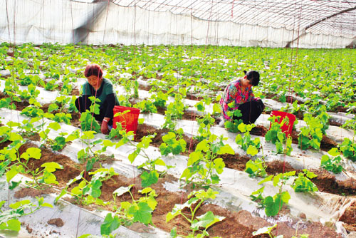 3月9日,在總投資1.2億元的原平市雙惠現(xiàn)代農(nóng)業(yè)科技示范園區(qū)的蔬菜大棚里,員工們正在對(duì)“香妃”、“芝麻蜜”香瓜進(jìn)行管理。在“冬季行動(dòng)”中,該園區(qū)真抓實(shí)干,到處是一派繁忙景象,目前一棟棟大棚里各種蔬菜、瓜果長(zhǎng)勢(shì)喜人。(趙春曉 攝)