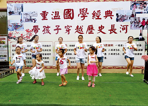 “朝起早,夜眠遲;老易至,惜此時?!苯眨挥诔菂^(qū)和平街上的北大青鳥國學(xué)館開辦“暑假國學(xué)班”。開課之日,許多家長帶著孩子來聽講,目的是為了豐富孩子們的暑假生活, 培養(yǎng)孩子們對中國傳統(tǒng)文化的興趣。在首場課上, 孩子們跟著國學(xué)老師一起吟誦《弟子規(guī)》 ,并被國學(xué)的博大精深所吸引。圖為國學(xué)班師生在做游戲。(張志遠(yuǎn) 攝)