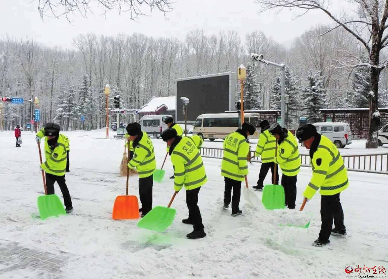 11日傍晚,景區(qū)交警大隊啟動惡劣天氣應急預案,堅持“警力跟著雪情走、管控跟著風險走”,對西線、北線等重點路段實施臨時交通管控,并將警力精準投放到主干道及各關(guān)鍵節(jié)點。12日上午,執(zhí)勤民警、輔警頂風冒雪,奮戰(zhàn)在清雪除冰第一線。風雪中,一抹抹流動的“熒光綠”成為最醒目的安全坐標,通過現(xiàn)場疏導、隱患排查與實時提示,全力筑牢道路交通安全防線。
