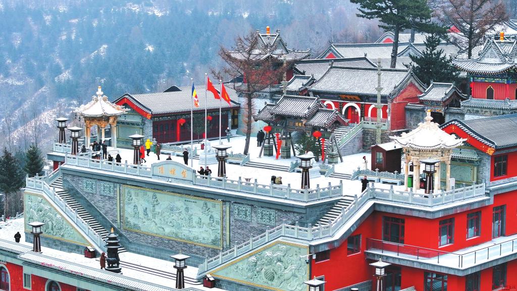 五臺山的雪,帶著空靈的寧靜。紅墻黛瓦覆上皚皚白雪,似給千年古剎披上素凈袈裟。古松挺立,枝椏掛滿雪凇,晨鐘響起時,雪沫從枝頭簌簌落下,與香火的青煙交織,恍若仙境。