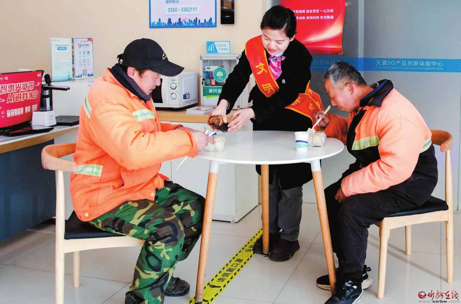 活動(dòng)當(dāng)天,忻州電信各網(wǎng)點(diǎn)“愛(ài)心翼站”成為溫馨的“暖心補(bǔ)給站”?!皭?ài)心翼站”的志愿者一大早就忙碌起來(lái),精心準(zhǔn)備了熱氣騰騰的餃子和香氣撲鼻的熱茶,他們走出營(yíng)業(yè)廳,熱情地招呼環(huán)衛(wèi)工人:“師傅,今天是冬至,這么冷的天,您辛苦一大早啦,快到咱營(yíng)業(yè)廳里吃些餃子暖和暖和……”環(huán)衛(wèi)工人們一邊吃著餃子,一邊連連感謝,為忻州電信的愛(ài)心服務(wù)豎起大拇指。