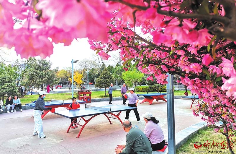 4月12日,市民在和平廣場開展戶外活動(dòng)。暮春時(shí)節(jié),忻州城區(qū)姹紫嫣紅,處處生機(jī)勃勃。(