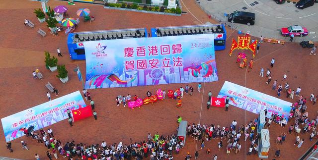 這也是《國歌條例》在香港刊憲生效后的第一個(gè)回歸慶祝日,全港一共有50多場(chǎng)奏唱國歌的活動(dòng)。除了在多個(gè)地標(biāo)奏唱,街頭也不時(shí)能聽到市民自發(fā)進(jìn)行的合唱“快閃”活動(dòng)。慶委會(huì)還舉辦電影《國歌》慶回歸特別專場(chǎng),電影開始前全場(chǎng)合唱國歌,氣氛熱烈。