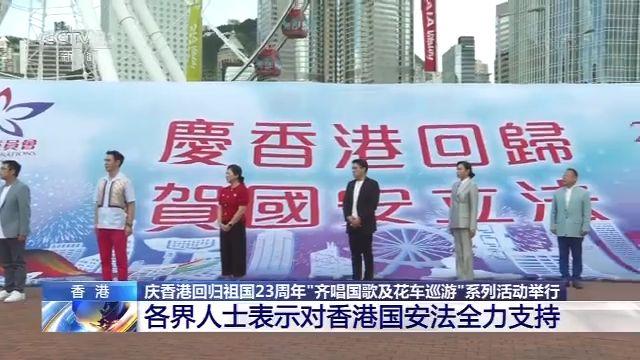 昨天(7月1日)上午,香港各界慶典委員會為慶祝香港回歸祖國23周年,舉辦“齊唱國歌及花車巡游”等系列活動(dòng),各界人士表達(dá)了對香港回歸祖國23周年的喜悅之情,以及對香港國安法的全力支持。