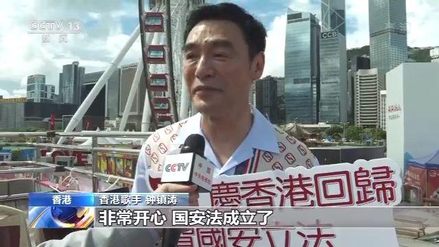 香港歌手 鐘鎮(zhèn)濤:非常開心,國安法成立了,那社會就更加安定了,我們各行各業(yè)都是覺得很慶祝的事情。今天(7月1日)早上一早出來的時(shí)候,經(jīng)過看見所有的人都是很高興的,看到就是在揮手,已經(jīng)很久沒有這個(gè)情形出現(xiàn)了。