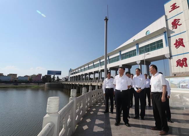 習近平來到阜陽市阜南縣王家壩閘 攝影:新華社記者鞠鵬 王曄