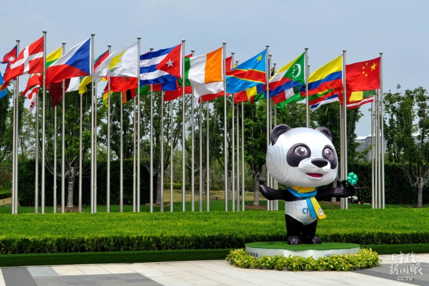 △7月27日,第三屆進(jìn)博會倒計(jì)時(shí)100天,場館外參展國國旗飄揚(yáng)。