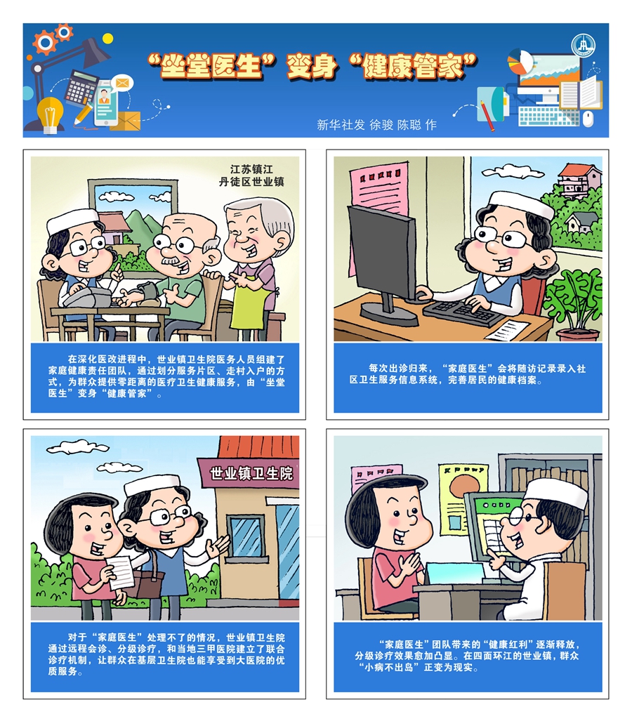 世業(yè)鎮(zhèn)衛(wèi)生院院長(zhǎng)胡小忠是深化醫(yī)改進(jìn)程的親歷者。據(jù)他介紹,自2015年開(kāi)始,衛(wèi)生院28名醫(yī)務(wù)人員以行政村為單位,組建了5支家庭健康責(zé)任團(tuán)隊(duì),各自對(duì)應(yīng)世業(yè)鎮(zhèn)的1個(gè)行政村。每個(gè)團(tuán)隊(duì)由臨床醫(yī)生、公衛(wèi)醫(yī)生、護(hù)士等組成,通過(guò)劃分服務(wù)片區(qū)、走村入戶的方式,為村民提供醫(yī)療衛(wèi)生健康服務(wù)。