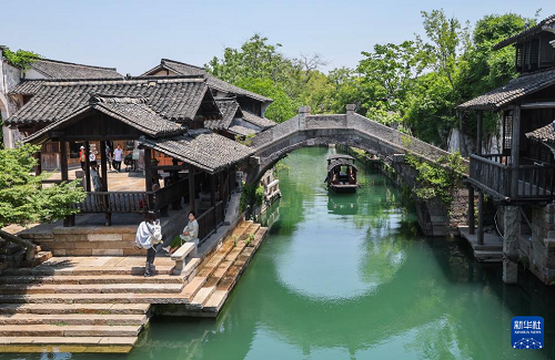 5月12日,游客游覽濮院時尚古鎮(zhèn)。(新華社記者 徐昱 攝)