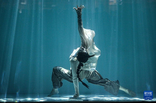 1月14日,舞者在2026中國極限舞蹈表演賽期間進行水下舞蹈表演。(新華社記者 蒲曉旭攝)