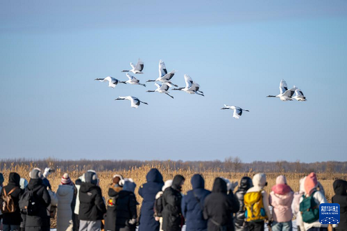 1月21日,游客在黑龍江扎龍國家級自然保護(hù)區(qū)內(nèi)觀看丹頂鶴。(新華社記者 張濤 攝)