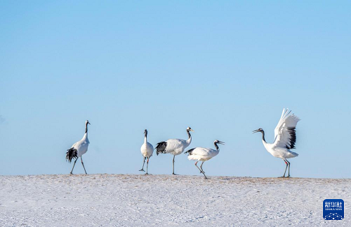 時(shí)值深冬,位于黑龍江省齊齊哈爾市的黑龍江扎龍國家級(jí)自然保護(hù)區(qū)銀裝素裹,冰雪中起舞飛翔的丹頂鶴吸引游客前來參觀、拍照。