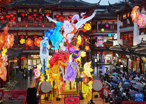 1月26日,游客在豫園燈會上賞燈。(新華社記者 劉穎 攝)