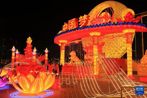 2月11日,游客在河北省石家莊市正太廣場賞燈游覽。(新華社發(fā) 陳其保 攝)