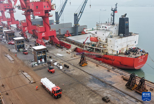 春耕農(nóng)忙時(shí)節(jié),江蘇連云港港暢通農(nóng)用物資綠色通道,對化肥等農(nóng)資做到隨到隨卸,裝車運(yùn)輸全程高效流水作業(yè),確保春耕農(nóng)資供應(yīng)。