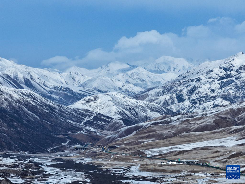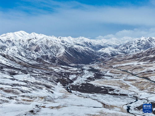 ?3月15日,青海省果洛藏族自治州瑪沁縣雪后迎來晴好天氣,群山被白雪覆蓋,與藍(lán)天相映,構(gòu)成一幅壯美的高原春日圖景(無人機(jī)照片)。(新華社記者 張龍 攝)