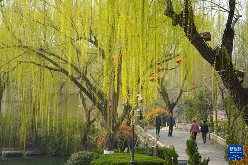 近日,山東省濟南市氣溫回升,大明湖畔的柳樹披上新綠,吸引游客前來踏春游覽。大明湖位于濟南市區(qū),湖岸種有大量柳樹,以“四面荷花三面柳,一城山色半城湖”的風光聞名。
