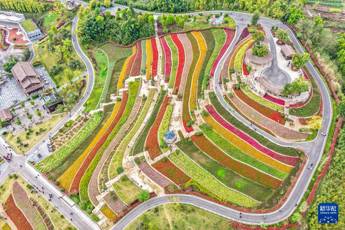 3月18日,游客在重慶市璧山區(qū)古道灣公園游玩(無(wú)人機(jī)照片)。(新華社記者 唐奕 攝)