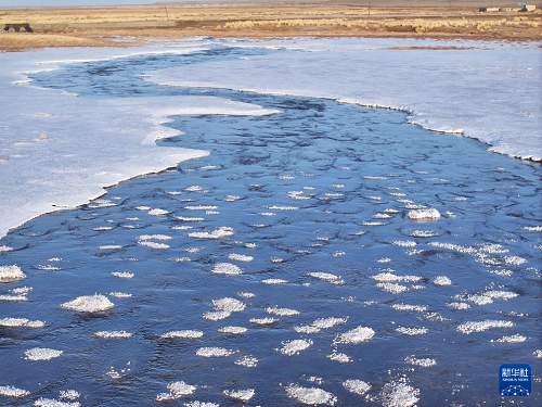 春回大地,位于甘肅省阿克塞哈薩克族自治縣阿勒騰鄉(xiāng)的哈爾騰河冰雪消融,初現(xiàn)生機。