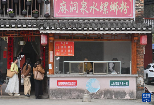 游客在廣西融水苗族自治縣融水鎮(zhèn)新國(guó)村一家螺螄粉店排隊(duì)購買螺螄粉(2026年3月7日攝)。(新華社記者 黃孝邦 攝)