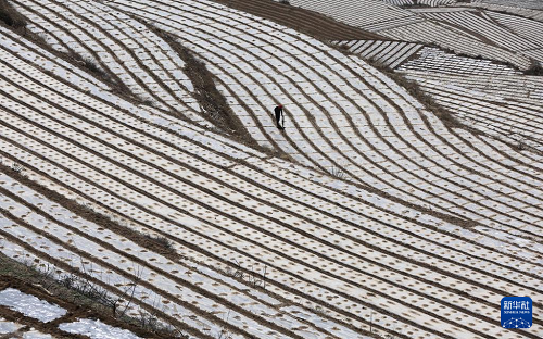 連日來,在黃土高原上的甘肅省天水市武山縣,當(dāng)?shù)剞r(nóng)民抓住近期降雨較多、土壤墑情好的有利時機,及時整地、施肥、覆膜保墑,覆膜后的山地梯田成為黃土高原上一道亮麗的春日風(fēng)景。