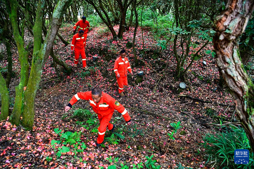 森林防火隊員們在貴州百里杜鵑管理區(qū)金坡景區(qū)巡邏,排查森林火災(zāi)隱患(4月2日攝)。(新華社記者 楊文斌 攝)