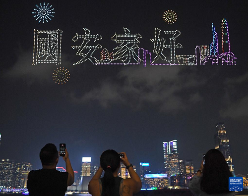 4月15日是第十一個全民國家安全教育日。當(dāng)晚,由紫荊文化集團主辦、紫荊雜志社承辦的大型主題無人機表演亮相香港。