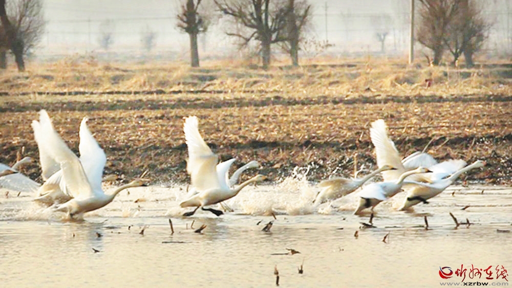 近日,在定襄縣受祿鄉(xiāng)附近的一片水域內(nèi),成群的天鵝擇水而棲,有的展翅秀舞姿,有的追逐互嬉戲。白羽翩翩,優(yōu)雅靈動,成為一道亮麗的風(fēng)景。