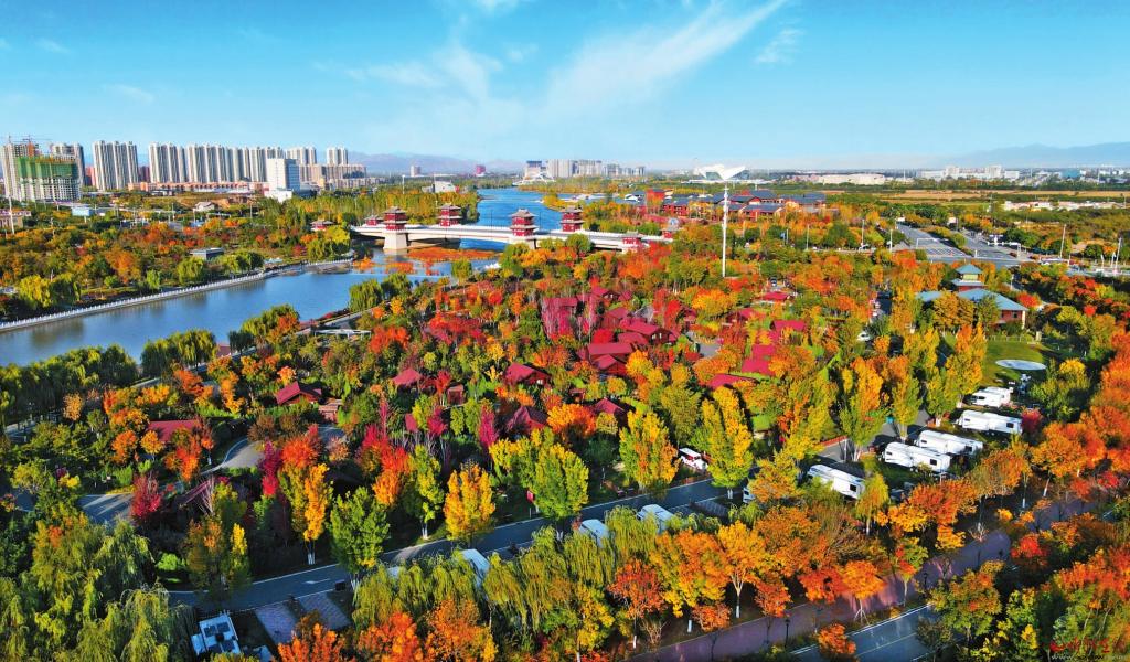 俯瞰忻州云中河房車營(yíng)地,繽紛秋色撲面而來(lái)。(本報(bào)記者 張存良攝)
