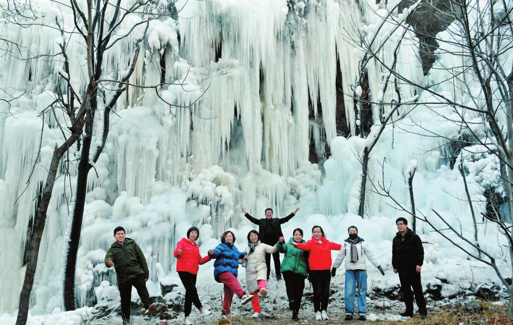 溝底溪水潺潺,崖壁冰掛高懸。一場大雪之后,定襄縣河邊鎮(zhèn)白玉溝的冰瀑又增添了一分奇巧、壯觀的韻味。(張晉蘭 攝影報道)