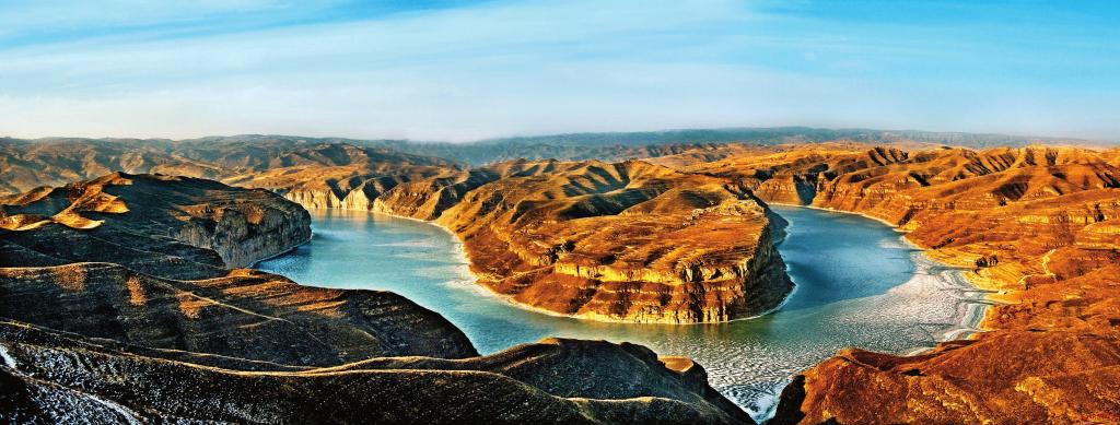 忻州是黃河入晉第一市,市域內(nèi)黃河流經(jīng)偏關(guān)、河曲、保德三縣,全長(zhǎng)171公里。黃河在忻州締造了一系列神奇的自然奇觀和神秘的人文傳說(shuō),不僅有黃河、長(zhǎng)城“雙龍并行”的身影,還在老牛灣留下了黃河與長(zhǎng)城握手的“佳話”,乾坤灣被稱(chēng)為“中國(guó)的科羅拉多”,河曲縣娘娘灘有著“天下黃河第一灘”的美譽(yù),黃河在保德縣則呈“V”形河谷,蔚為壯觀。