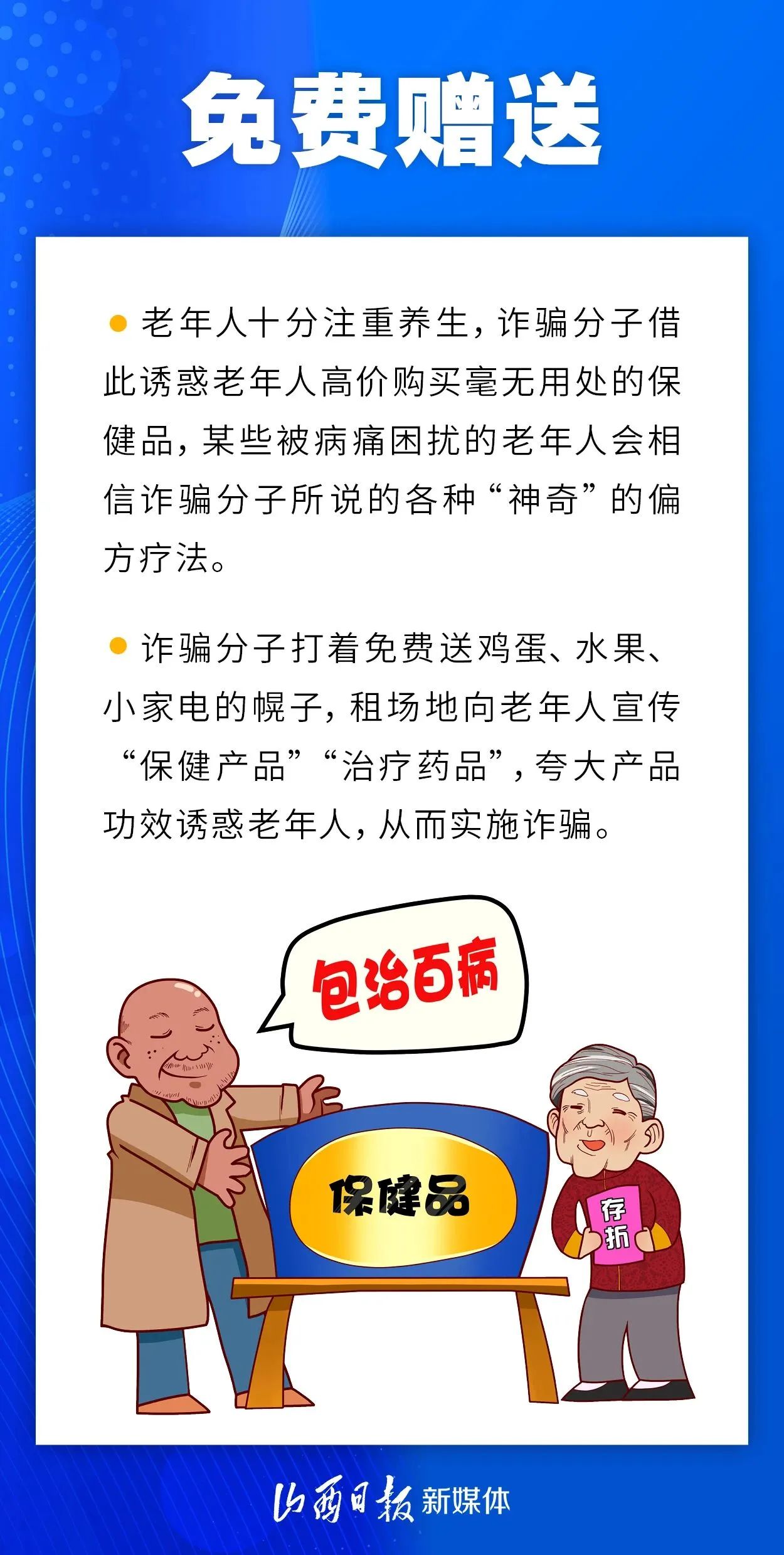 近年來(lái),詐騙套路層出不窮。一些不法分子利用老年人信息閉塞、渴望健康、認(rèn)知較弱的特點(diǎn),騙取老年人錢財(cái)。常見的詐騙套路有哪些?我省民警重點(diǎn)介紹了九類涉老詐騙。