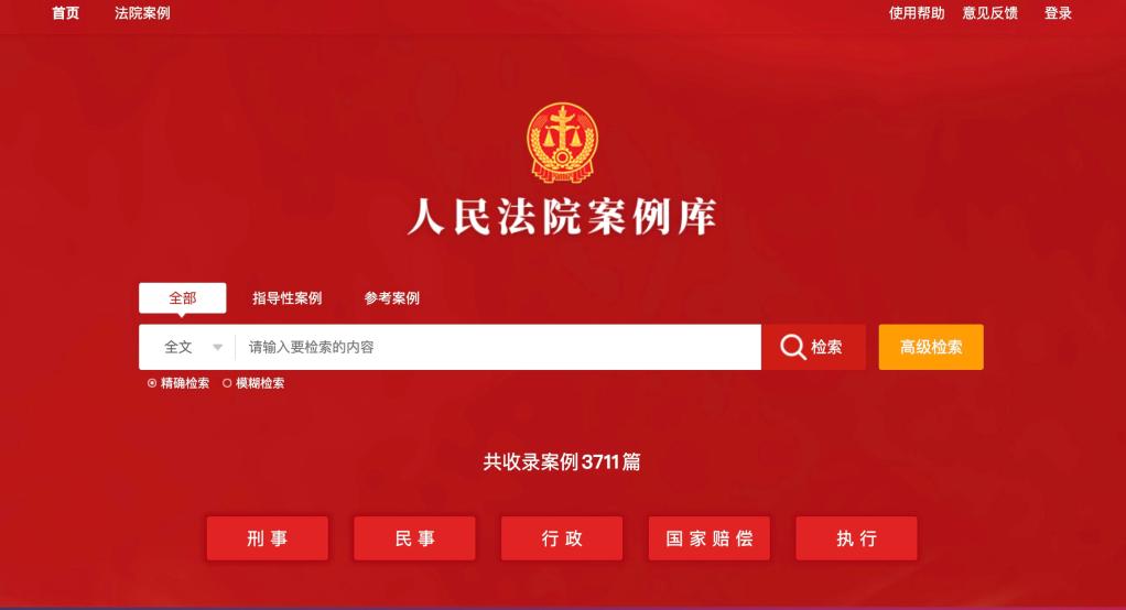 人民法院案例庫網頁截圖。