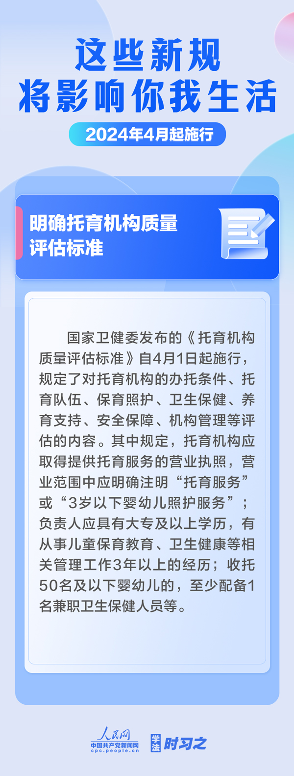 加強(qiáng)中央儲(chǔ)備棉管理;明確托育機(jī)構(gòu)質(zhì)量評(píng)估標(biāo)準(zhǔn);規(guī)范可再生能源電量收購(gòu)……4月起,這些新規(guī)施行,將影響你我生活。(薄晨棣)