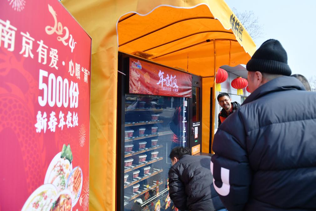 2024年2月9日,南京市交通運輸局面向網(wǎng)約車司機、快遞員等新業(yè)態(tài)勞動者開展“年夜飯”贈送活動。 新華社記者 柳文惠 攝