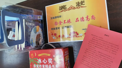 近日,河曲縣公安局民警帶著感謝信和獎品走進黃河路小學,為拾金不昧的王同學舉行了一場特別的“頒獎儀式”,用滿滿的儀式感鼓勵同學們大力弘揚社會正能量。