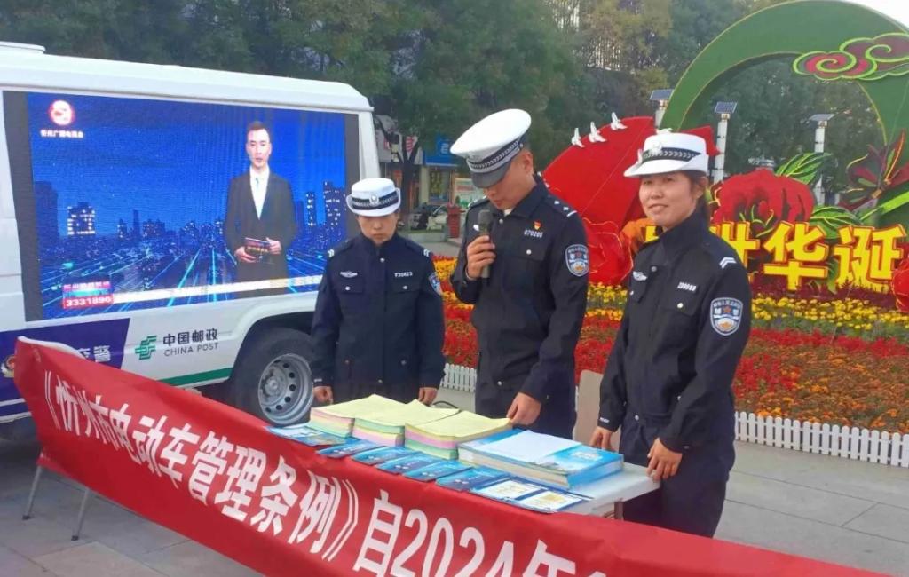 10月24日下午,忻州市公安局交警支隊(duì)在市區(qū)街心公園廣場(chǎng)開展《忻州市電動(dòng)車管理?xiàng)l例》普法宣傳活動(dòng)。本場(chǎng)活動(dòng)采取線上直播和線下宣傳同步的方式進(jìn)行,“忻州交警”抖音號(hào)、“山西忻州交警”微博賬號(hào)、“忻州郵政”抖音號(hào)“警郵直播間”等平臺(tái)同步線上直播。