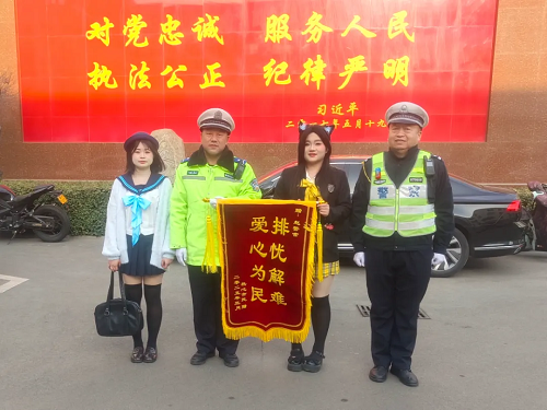 3月11日下午,兩位女士專程來到忻州市公安局交警支隊直屬一大隊,送上一面印有“排憂解難 愛心為民”字樣的錦旗,感謝大隊輔警趙鐵東同志的熱心幫忙。