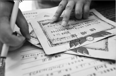 19日下午1點半,80歲的單大爹拿著剛剛補辦的結(jié)婚證,顫巍巍地坐在了官渡區(qū)便民服務(wù)中心二樓的椅子上。45年前,他的結(jié)婚證在一場大火中被燒毀。78歲的老伴符大媽站在一旁,一個勁地說著“太丟人了”!她知道,就在今天,他們剛剛補辦的結(jié)婚證上,將會蓋上一個藍框框,上面寫著:“雙方離婚,證件失效。昆明市官渡區(qū)婚姻登記處?!边@張新的結(jié)婚證,他們是為了離婚才補辦的。今年是他們綠寶石婚,這原本寓意圣潔和堅固的愛情。