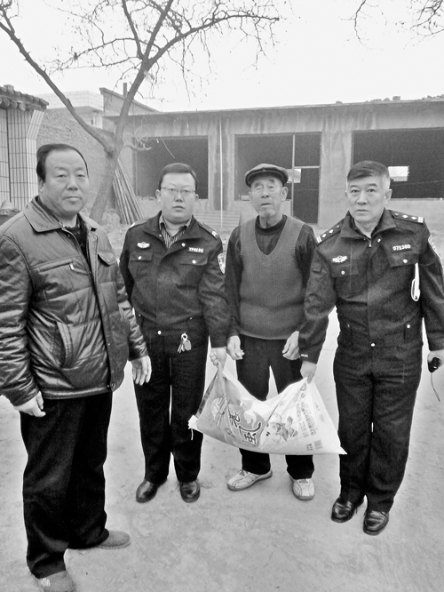 近年來,大隊(duì)把扶貧工作當(dāng)作一項(xiàng)政治任務(wù)抓在手上,為了更好地精準(zhǔn)扶貧,按計(jì)劃力爭(zhēng)提前完成扶貧攻堅(jiān)任務(wù)。2015年,李晉生擔(dān)任了原平市南白鄉(xiāng)尚義村的第一書記,負(fù)責(zé)該村的幫扶工作。南白鄉(xiāng)尚義村是原平市的重點(diǎn)貧困村,也是交警大隊(duì)幫扶村,全村204人,貧困人口占80%。當(dāng)年12月17日,他自籌2000多元,購(gòu)買了米、面、糧、油,與大隊(duì)的4位民警來到了南白鄉(xiāng)尚義村走訪慰問特困家庭。在全市開展精準(zhǔn)扶貧的攻堅(jiān)階段,為了讓特困家庭度過溫暖的冬季,交警大隊(duì)民警進(jìn)村入戶共慰問五保戶、特困戶8戶,為他們送去了面粉、大米和食用油。同時(shí),大隊(duì)長(zhǎng)還看望了90歲高齡的抗戰(zhàn)老兵趙書良,1925年出生的趙書良老人,17歲時(shí)就參軍,在抗日戰(zhàn)爭(zhēng)中多次立功授獎(jiǎng)。當(dāng)老人雙手接過慰問金后,激動(dòng)地說:“還是共產(chǎn)黨好,人民警察和人民真是心連心??!”