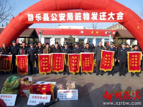 為展示人民公安為人民的良好形象,彰顯公安機(jī)關(guān)嚴(yán)厲打擊各類(lèi)犯罪活動(dòng)的信心與決心,大大提高人民群眾的安全感、滿意度,1月18日,靜樂(lè)縣公安局在縣人民廣場(chǎng)舉行贓物發(fā)還大會(huì),副縣長(zhǎng)、公安局長(zhǎng)劉元豐及該局在家黨委班子成員、刑偵大隊(duì)全體民警、各界群眾500余人參加發(fā)還大會(huì)。