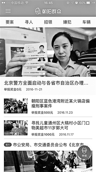 “朝陽群眾”因參與破獲多起明星吸毒等大案、要案被眾多網(wǎng)友熟知,并被網(wǎng)友戲稱為世界王牌情報(bào)組織。近日,一款名為“朝陽群眾”的APP悄然上線,隨即引發(fā)關(guān)注。 就在眾多網(wǎng)友討論這款A(yù)PP是否為警方研發(fā)時(shí),2月13日晚,北京市公安局朝陽分局發(fā)布消息,證實(shí)這款A(yù)PP為朝陽警方會(huì)同相關(guān)單位研發(fā),目前已進(jìn)入上線測(cè)試階段。此外,警方表示,希望借助這個(gè)警民合作平臺(tái),共同為社會(huì)治安、城市發(fā)展貢獻(xiàn)力量。警方人士透露,屆時(shí)將為熱心舉報(bào)的市民身份進(jìn)行保密,并為成功舉報(bào)者提供適當(dāng)獎(jiǎng)勵(lì)。 事件 “朝陽群眾”APP上線引熱議 得益于有著“世界王牌情報(bào)組織”之稱的北京朝陽群眾,APP“朝陽群眾HD”剛一上線,便引發(fā)眾多網(wǎng)友關(guān)注。 北京青年報(bào)記者下載該APP發(fā)現(xiàn),使用該軟件需要用手機(jī)號(hào)碼注冊(cè)。注冊(cè)后,應(yīng)用頁面被劃分為“要案”、“尋人”、“招領(lǐng)”、“嫌犯”和“車輛”等多個(gè)板塊。此外,該軟件還內(nèi)置“熱心舉報(bào)”功能,點(diǎn)擊后可出現(xiàn)“兒童拐賣”、“疑似嫌犯”、“老人走失”、“肇事違章”、“遺失招領(lǐng)”和“其他舉報(bào)”的分類,可通過拍攝小視頻、照片和文字進(jìn)行相關(guān)“舉報(bào)”。 但北青報(bào)記者注意到,APP頁面上的新聞并非最新信息,均為2016年下半年消息,已有數(shù)月未更新。此舉也引發(fā)部分網(wǎng)友質(zhì)疑:“朝陽群眾HD”是否由警方開發(fā)?注冊(cè)手機(jī)號(hào)后進(jìn)行“舉報(bào)”是否存安全隱患? 細(xì)節(jié) 開發(fā)公司“覆蓋多警種視頻業(yè)務(wù)” “朝陽群眾HD”顯示,該款A(yù)PP是一個(gè)集成警民合作,案件下發(fā),群眾上傳的平臺(tái),“公安民警聯(lián)合民間力量,對(duì)一些案件進(jìn)行線索搜集,并且同時(shí)得到一些可疑情況的舉報(bào),為社會(huì)治安、城市發(fā)展,人民群眾的生命財(cái)產(chǎn)安全提供更加全面的信息化共享服務(wù)”。 同時(shí),北青報(bào)記者注意到,“朝陽群眾HD”由東方網(wǎng)力科技股份有限公司開發(fā)。該公司官網(wǎng)信息顯示,其成立于2000年9月,于2014年1月29日在深圳證券交易所創(chuàng)業(yè)板上市,并自稱“圍繞公安行業(yè)針對(duì)視頻的實(shí)戰(zhàn)需求”,該公司“實(shí)現(xiàn)了對(duì)公安科信、刑偵、交管、監(jiān)所等警種的視頻業(yè)務(wù)全覆蓋”。 13日下午,北青報(bào)記者致電該公司,詢問“朝陽群眾HD”是否由其與警方合作研發(fā),但對(duì)方回復(fù)稱“不清楚”。此外,北青報(bào)記者暫未檢索到與“朝陽群眾HD”項(xiàng)目相關(guān)的公開招投標(biāo)信息。 回應(yīng) 市民舉報(bào)信息可獲獎(jiǎng)勵(lì) 2月13日晚,北京市公安局朝陽分局發(fā)布消息稱,“為進(jìn)一步密切警民關(guān)系,更好地發(fā)揮‘朝陽群眾’的作用,朝陽警方會(huì)同相關(guān)單位研發(fā)了‘朝陽群眾HD’APP系統(tǒng)?!本椒Q,目前該應(yīng)用已進(jìn)入測(cè)試階段。 警方表示,“希望借助這個(gè)警民合作平臺(tái),共同為社會(huì)治安、城市發(fā)展貢獻(xiàn)力量?!贝送?,警方人士透露,軟件將為舉報(bào)者提供保密服務(wù),并在舉報(bào)成功后提供適當(dāng)獎(jiǎng)勵(lì)。(記者 張雅) (責(zé)任編輯:盧相?。?/p> |