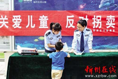 本報(bào)訊 近日,為進(jìn)一步提高人民群眾特別是廣大少年兒童的防拐意識(shí)和防拐能力,忻府區(qū)公安局刑偵大隊(duì)民警在體育廣場(chǎng)開展了以“關(guān)愛兒童、反對(duì)拐賣”為主題的打拐宣傳活動(dòng)。