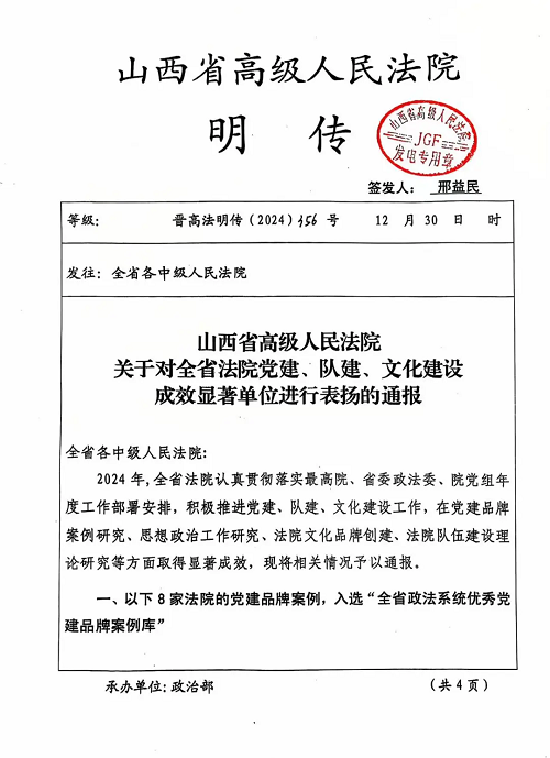 積極利用忻州優(yōu)質(zhì)紅色資源,注入法院文化,作為堅定理想信念、加強黨性修養(yǎng)的生動教材,組織黨員干警到西柏坡紀念館、省黨風廉政教育基地、徐向前故居等地接受革命傳統(tǒng)教育,以參觀主題展館、聆聽紅色故事、重溫入黨誓詞、講授紅色黨課等方式開展紅色教育實踐活動,在實物、實景、實事中注入強大的精神動力。打造特色文化陣地,建成黨建、家事、傳統(tǒng)三個主題文化長廊,引導干警學黨史、知黨情、感黨恩、跟黨走。依托“兩微一網(wǎng)”、抖音、快手等新媒體平臺,積極開展法院文化宣傳,拍攝制作的8部法治微電影、微視頻先后榮獲5個國家級和15個省級表彰獎項,中院天平號被最高院評為“十佳天平號”“百佳新媒體”。忻州中院被指定為“忻州市青少年法治教育基地”,被省委宣傳部、省司法廳評為“省級法治宣傳教育基地”,被省社科聯(lián)命名為“山西省社會科學普及宣傳基地”。用心用情、精準精細做好老干部工作,念好“居、學、榮、依、樂、為”六字訣,《黨建引領(lǐng)“夕陽紅”,夕陽點亮“黨建紅”》典型經(jīng)驗在全市老干部工作會議上作了交流。