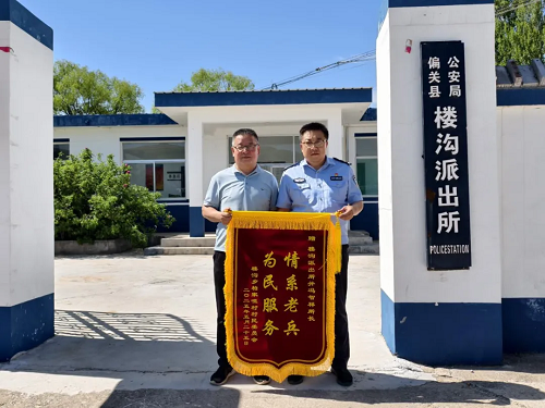 6月9日,樓溝鄉(xiāng)副鄉(xiāng)長、柏家咀村書記顧升寬代表柏家咀村民委員會懷著感激之情,將一面繡有“情系老兵為民服務(wù)”字樣的錦旗送到偏關(guān)縣公安局樓溝派出所,真誠感謝樓溝派出所為轄區(qū)困難群眾辦實事,幫助柏家咀困難退伍老兵丟失戶口50余載、身邊無親人照料的顧二小補辦戶口。