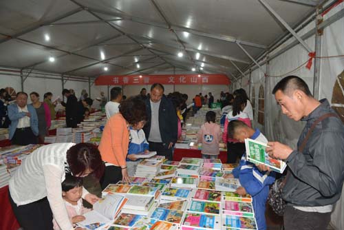 近日,定襄縣金鼎廣場的圖書展銷受到廣大群眾的熱烈歡迎,主辦方專門設(shè)置了閱覽區(qū),群眾不僅能享受圖書折扣,還能免費閱覽所有圖書。此次活動是定襄縣“我的中國夢,書香飄萬家”全民閱讀推廣主題活動之一,為期15天。圖為5月12日,群眾在書展上購書閱讀。(劉小苗)