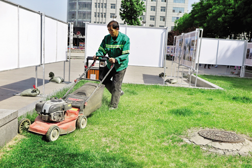 近日,城區(qū)日月廣場(chǎng)上,園林工人正在對(duì)草坪進(jìn)行修剪。隨著氣溫增高,雨水充足,草坪和路邊的灌木生長(zhǎng)茂盛,園林工人及時(shí)對(duì)草坪、灌木進(jìn)行修剪,保證了城區(qū)綠化帶干凈整潔。(張志遠(yuǎn) 攝)