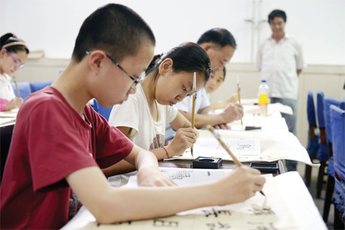 7 月17 日,在靜樂縣青少年文化活動中心,孩子們正在認(rèn)真練習(xí)書法。進(jìn)入暑期以來,該縣興趣特長班又火熱起來,學(xué)生們利用暑假時間投身于各自的興趣愛好之中,讓自己的假期變得更為充實、更有意義。(閆曉梅 攝)
